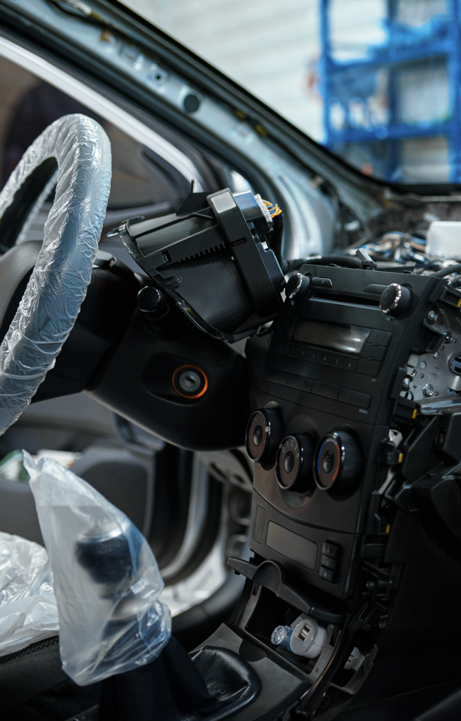 Na reparação de interiores, em alternativa à substituição de peças, utilizamos técnicas, materiais e produtos para reparar bancos, estofos, painel de instrumentos, devolvendo aos mesmos a sua aparência original, possibilitando o aumento da sua vida útil.